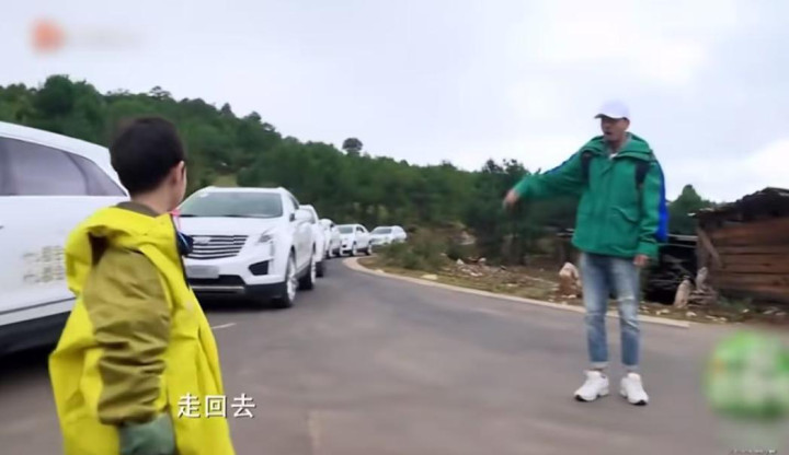 在《爸爸去哪儿》里,7岁的儿子杨雨辰走错路,他就让孩子原路返回重走。