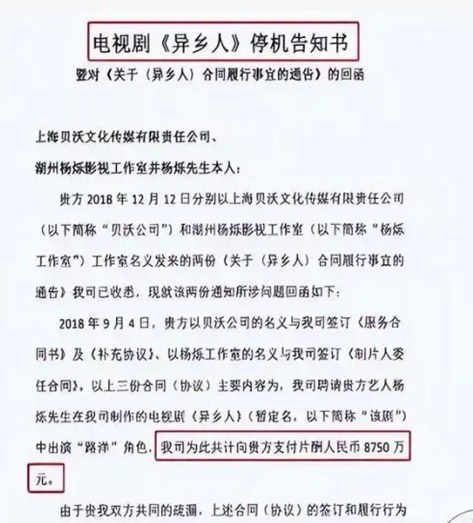 坊闻称,此前杨烁刚和《异乡人》剧组签下总片酬直逼八千万的拍摄合同。