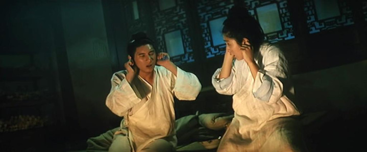 梁山伯在她的屁股上敲了一下,而祝英台则用打铃的手势来嘲笑他,两人的关系,显然是更进一步了。