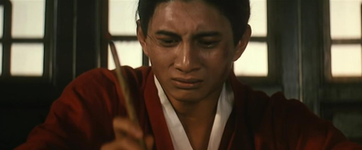 祝英台立刻起身就要打拳,但梁山泊抬起头时,祝英台才发现他的眼睛已经被自己打肿了。