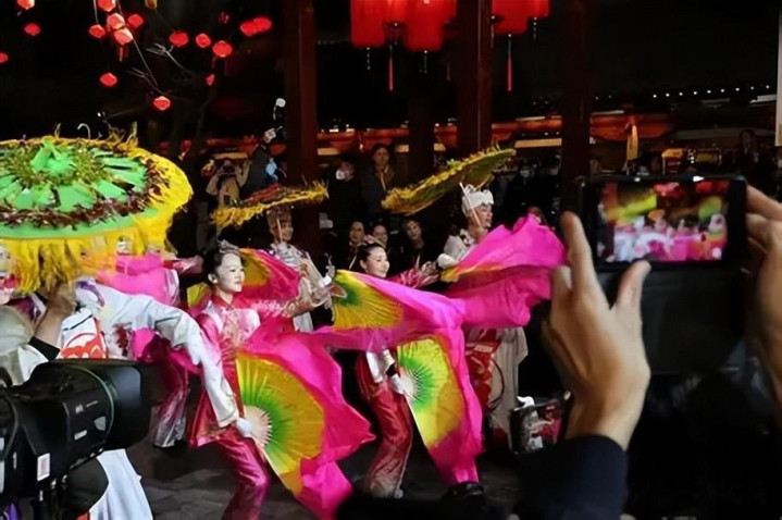 就像西安的大唐不夜城,春节期间每天都挤满了人,里面有很多外国人,跟着穿汉服的队伍拍手,看各种民俗表演,看得特别认真。